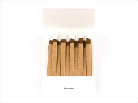 A handcrafted book of twenty paper matches. Striking strip on back of book. 2×1½×⅜ inches.